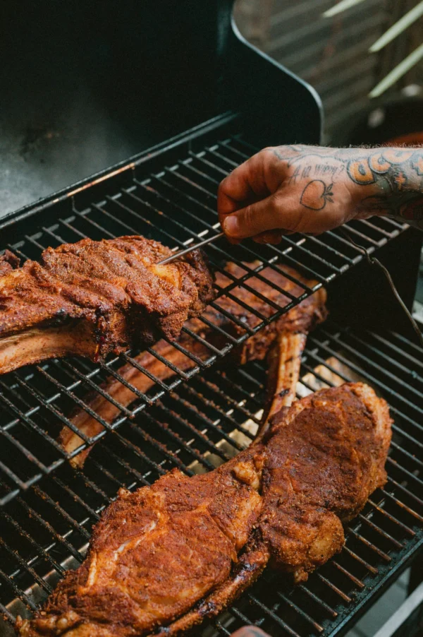 Stek Tomahawk to prawdziwa ikona w świecie wołowiny – wycinany z przedniej części antrykotu i podawany z charakterystyczną, długą kością żebrową. Jego imponujący wygląd zawsze przyciąga wzrok, a intensywne marmurkowanie sprawia, że mięso jest niezwykle soczyste, pełne smaku i doskonale nadaje się do grillowania na ogniu. Przygotowywany zawsze na świeżo, Tomahawk to idealny wybór, gdy chcesz zachwycić swoich gości i poczuć się jak prawdziwy BeefMaster Grilla.